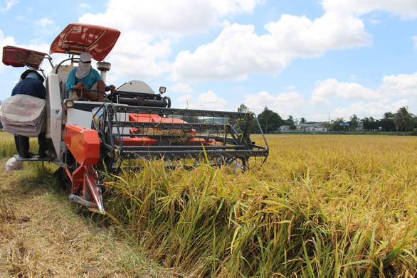 Thu hoạch lúa ở An Giang. Ảnh: Trần Mạnh